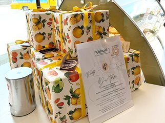 Our "Agrumi" paper wraps the Exclusive "Due Terre" Focaccia by Golosità Pasticceria