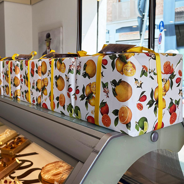 Such a symbolic, intense, and precious product deserved a package of equal standing. The choice of our "Agrumi" paper is perfect: it visually and ideally recalls the freshness and aroma of the Syracuse lemon present in the dough, creating an aesthetic and sensory coherence that enhances the value of the pastry, completing this masterpiece of confectionery, and adding a touch of refinement and the unmistakable quality that distinguishes Tassotti.