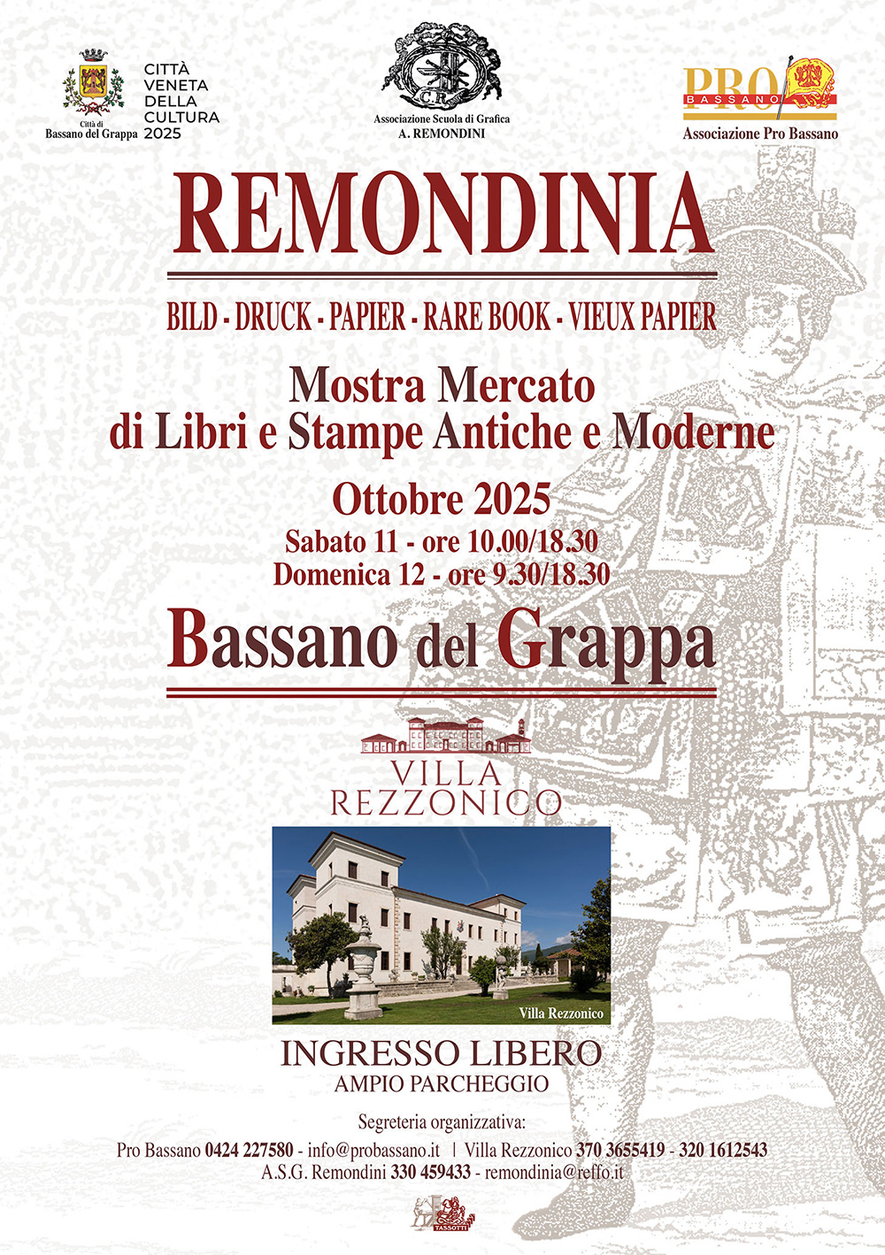 On Saturday 11 and Sunday 12 October, Villa Rezzonico in Bassano del Grappa will host Remondinia, the book and print fair dedicated to antique and modern prints.