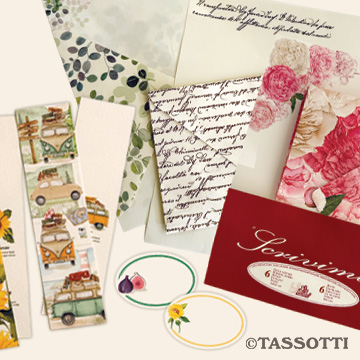 Cada creación hunde sus raíces en un territorio de profunda cultura artesanal de la imprenta: Bassano del Grappa, donde desde hace sesenta y nueve años la empresa transforma el papel en objetos de diseño preciosos y apreciados. La propuesta abarca desde tarjetas de felicitación hasta cuadernos, desde accesorios de decoración para el hogar hasta soluciones de bricolaje, manteniendo siempre esa atención meticulosa al detalle que ha convertido a la marca en un símbolo de la excelencia Made in Italy. Todo nace en el taller de Tassotti, a través de un proceso que combina dibujo a mano, acuarela y desarrollo de patrones originales, dando vida a 20 nuevos papeles decorativos y 40 tarjetas de felicitación, combinados con bolsas coordinadas, así como etiquetas, diarios, cuadernos, sobres y papel de cartas, disponibles en distintos formatos.
