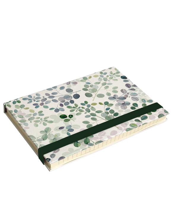 Elégant, pratique, avec couverture extérieure et page de garde en papier décoratif 120 gr. Tranchefile et élastique coordonés. L’intérieur est en papier naturel ivoire 90 gr / 224 pages.