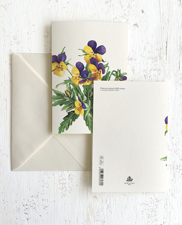 Les sujets originaux de cette série de cartes de voeux utilisables à de nombreuses occasions, sont issues de la collection de gravures d’art Tassotti. Images de fruits, fleurs, animaux, scènes de Noel et symbolisme historique imprimés sur cartonette écologique de 200 gr. constituent une collection classique.