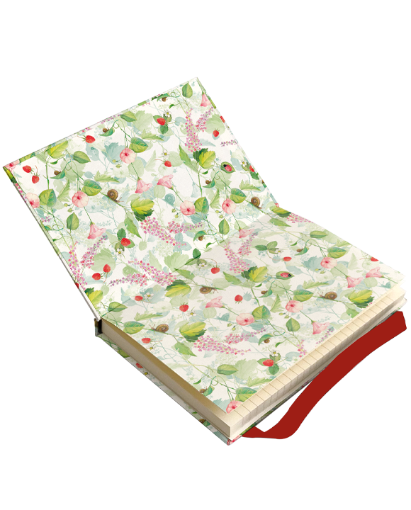 Elegante, pratico, rivestito esternamente e nei risguardi con carta decorata 120 gr; Capitello ed elastico in coordinato. Interno con carta avorio uso mano da 90 gr. , 224 pagine.
